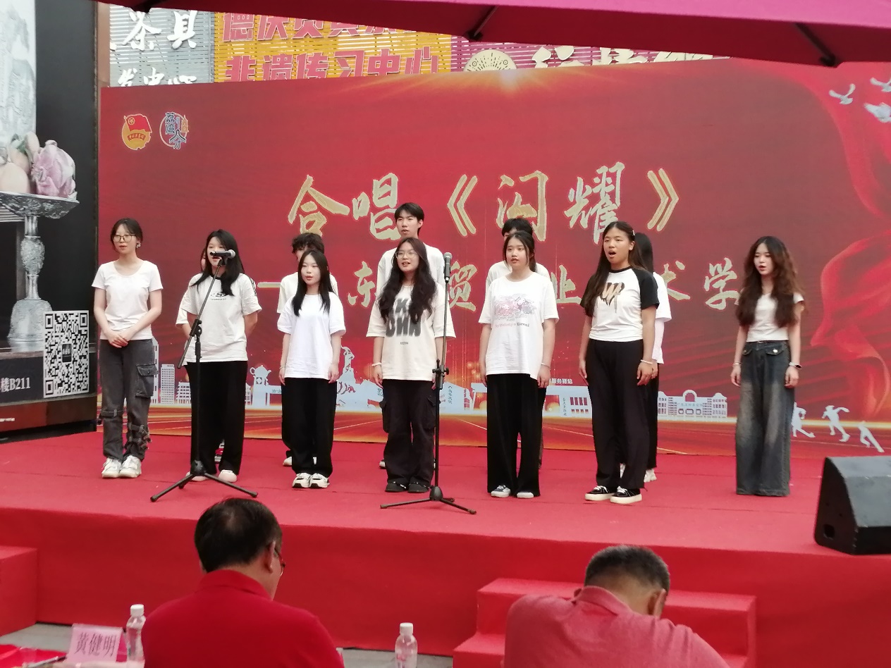 我院合唱队还现场表演了合唱节目《闪耀》,演唱活动充分展现了工贸青年学子的青春活力,为此次活动增添了青春的色彩,鼓舞了大家在各自的人生舞台闪耀自己的光芒,现场氛围热烈融洽。
