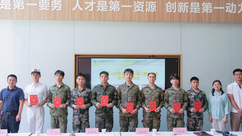 会议最后,他为学院退役军人“红色初心”宣讲团(第二期)的团员颁发证书。通过此次会议,学院将坚持把国防教育的思想共识融入日常的大学生思想政治教育,转化为学生的自觉行动和征兵工作的实际成果,全力推动学院征兵工作提质增效。
