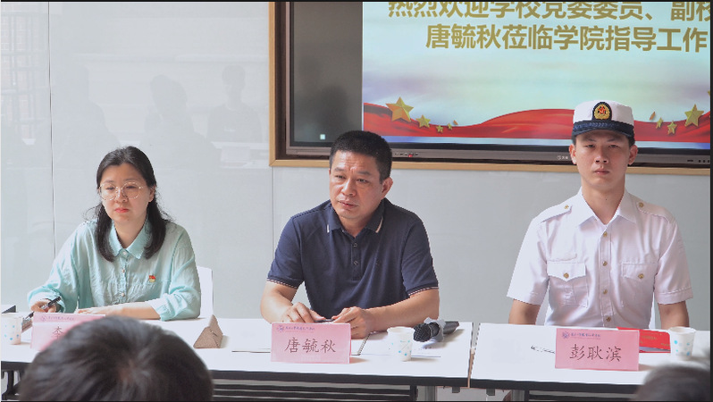 随后,学校党委委员、副校长唐毓秋与参会人员开展征兵工作交流座谈会。他指出2024年秋季征兵工作时间紧,任务重,学院要深刻认识征兵动员的重大政治意义,抓实“一年两征”工作。他指出,学院要明确主体责任,建立精准征兵制度,周密制定工作方案;学院要根据征兵优势和特点,建立长期征兵工作机制,精准宣传,做好入伍学生后续服务工作;落实征兵工作。然后,他对同学们给予鼓励与嘱咐:参军入伍是大学生成长成才、提升思想境界、锻炼意志品质、提升综合能力的重要途径,对实现军队和国防现代化、实现强国强军中国梦具有重要意义。成为一名军人不容易,需要同学们树立奋斗目标,具有良好的学习和锻炼的习惯,学习本领、练就品格、强大精神。要把入伍的这段经历当成人生的宝贵历练、看作报效祖国的人生壮举,前赴后继。