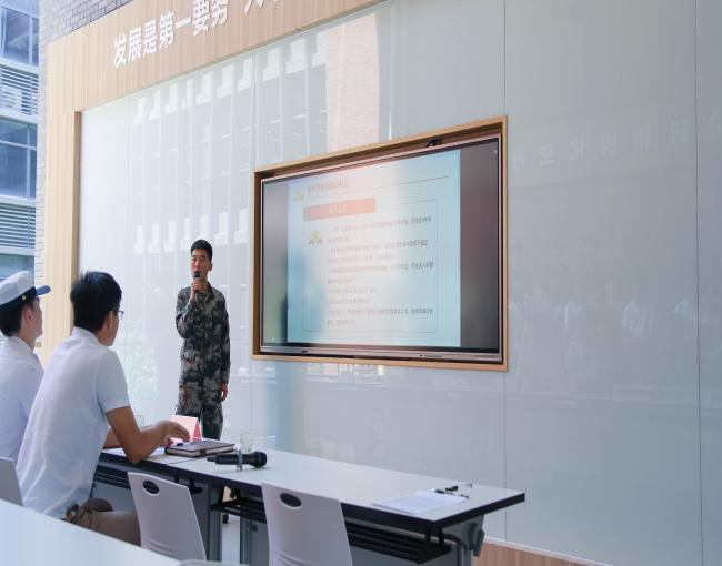首先,学院优秀毕业生、退役军人彭耿滨以“祖国不会忘记我”为主题进行发言,他从为什么要入伍、当兵之后能做什么、退伍军人的职业生涯规划发展等方面分享了从军经历、退伍复学后的学习收获和深切感悟,同时也表达了自己对母校、老师们教育培养的感恩之情,他表示将牢记军人的使命,勇往直前,以实际行动为母校争光。接着,在校退役学生张创举同学对入伍的条件,参军的意义,参加入伍的优惠政策等方面进行分享。