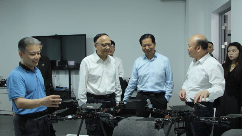 座谈会结束后,威廉希尔官网领导陪同贵宾参观了测绘遥感信息学院的建设状况,由测绘遥感信息学院的党总支书记、院长速云中担任讲解员。先后参观了测绘地理信息技术校企协同就业创业创新示范实践基地、工信部中小企业发展促进中心党建与创新文化长廊、测绘地理信息虚拟仿真实训基地、无人机应用与创新空间、测绘技术虚拟仿真体验中心等场所,并介绍了虚拟仿真基地的教学应用情况。参观过程中,速云中院长分享了“双高计划”专业群建设经验,双方就“双高计划”专业群建设、产业学院建设、人才培养等方面进行了经验交流和深入探讨。