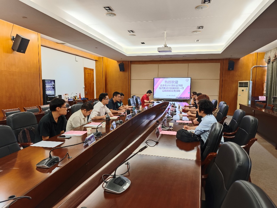 5月30日上午,北京电子科技职业学院经济管理学院院长戚瑞双,综合管理办公室主任霍苒,财经系主任张春辉,商务管理系主任马洁,商务管理系专任教师赵静一行5人,赴威廉希尔官网经济贸易学院开展学习交流活动。经贸学院党总支书记李繁,党总支副书记龚云,副院长蒋晶,商贸系主任霍杰,商贸系副主任谷少永,电子商务专业带头人方文超等领导老师热情接待来访,双方于明德楼1-201会议室举行交流座谈会,会议由李繁主持。