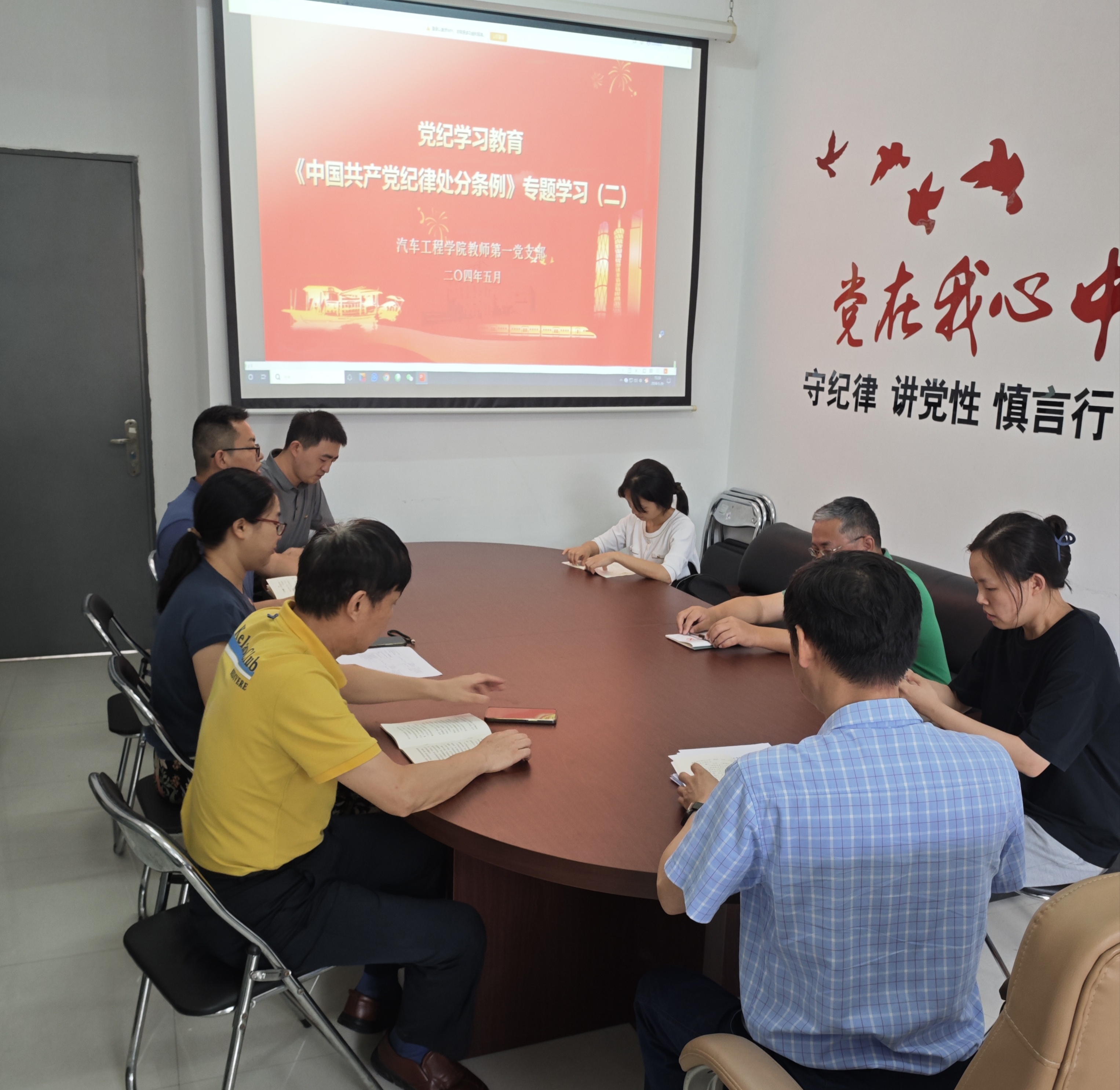 为扎实做好党纪学习教育及警示教育工作,2024年5月29日下午,汽车工程学院教师第一党支部按照《汽车工程学院教师第一党支部党纪学习教育学习计划》,在行知楼412开展了党纪学习教育专题学习会,会议由支部书记侯益坤同志主持。