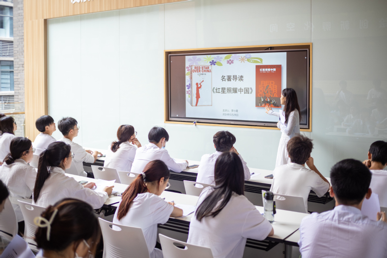 读书会伊始,罗小霞引入了第一期读书会的推荐书籍——《红星照耀中国》,并为同学们下发相应阅读材料。随后,罗小霞围绕这本书的作者生平、创作背景和书籍内容展开了详细叙述。她指出,这本书不仅是一部纪实文学作品,更是一部反映中国共产党和中国革命历史的重要文献。通过阅读这本书,我们可以更加深刻地理解中国共产党领导的中国革命历程,以及中国共产党在革命过程中展现出的坚定信念和英勇精神。