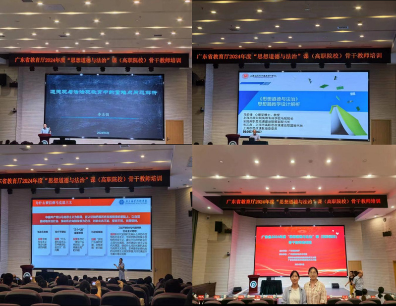 为深入学习领会习近平新时代中国特色社会主义思想,落实落细立德树人根本任务,推进威廉希尔官网思政课的建设和发展,6月13日-15日,马院教师黄丽瓶、许新参加2024年度广东省“思想道德与法治”课(高职院校)骨干教师培训班。培训班由广州番禺职业技术学院承办。