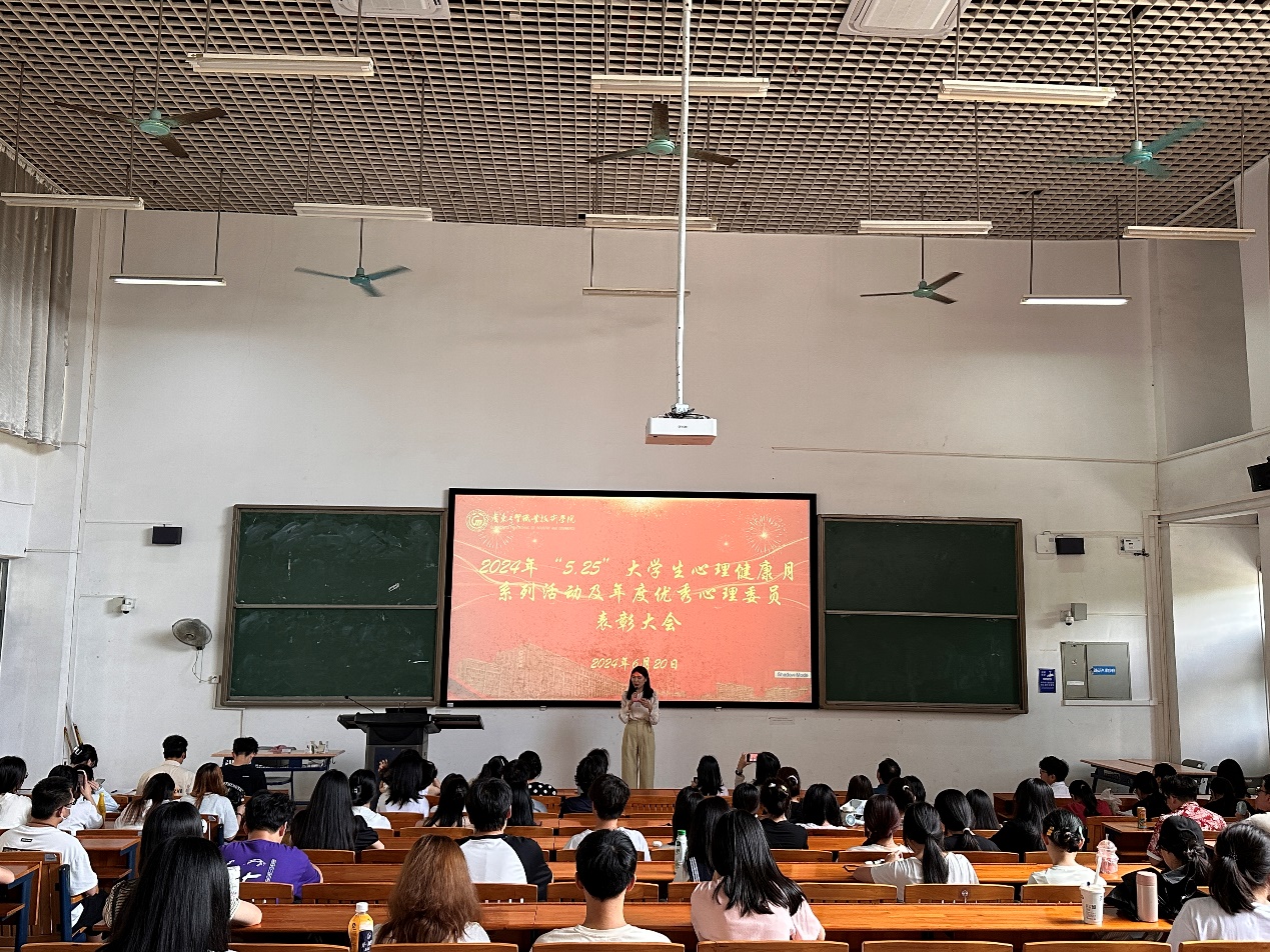 为进一步加强学校心理健康教育工作,同时鼓励学生积极参与心理健康活动,提高学生心理健康意识,调动心理委员增强危机意识,加强对班级同学心理状态的关注程度,6月20日下午2点10分,心理咨询中心在明德楼2-103开展2024年“5·25”大学生心理健康月系列活动及年度优秀心理委员表彰大会。此次活动由心理咨询中心龚伟志老师、刘敏老师、周明娜老师、周灿老师、刘晓瑜老师、周薰妮老师、应用外语学院孙文星老师、机电工程学院李享老师和90余位同学参与。