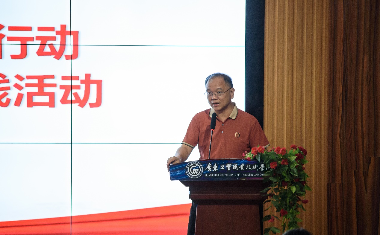 接着,党总支临时负责人叶宜同做动员讲话。叶宜同首先对此次参加“百千万工程”突击队行动以及暑期“三下乡”实践活动的全体师生表示了忠心的感谢,然后他强调了团队协作与团队安全的重要性,并希望全体同学能谨记工贸学子的身份,时刻以高要求严格要求自己,在活动中积极展现学校的风采,为艺教学院争光!为广东工贸添彩!