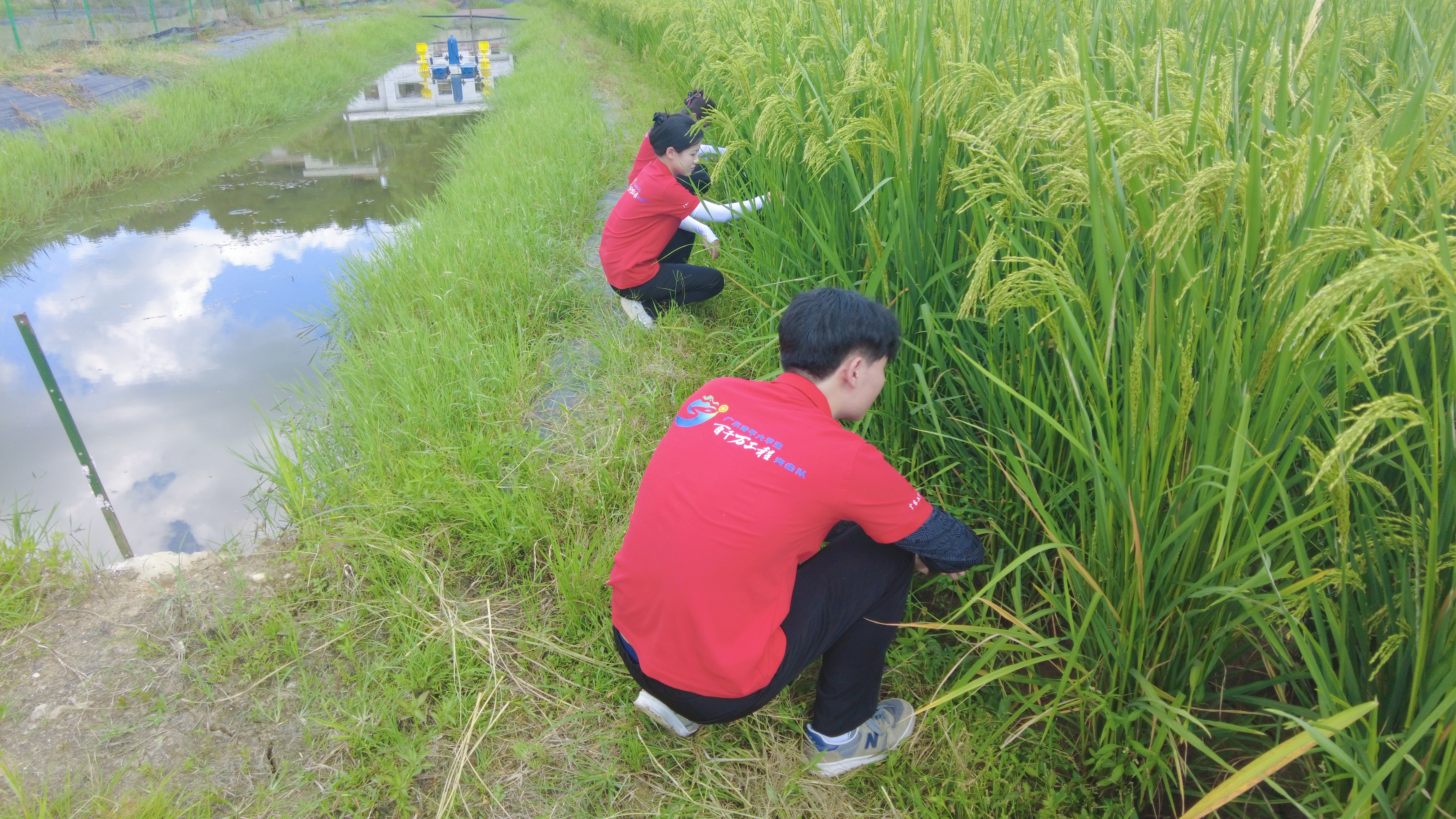 图3 突击队成员深入稻虾养殖基地实地勘测水质
