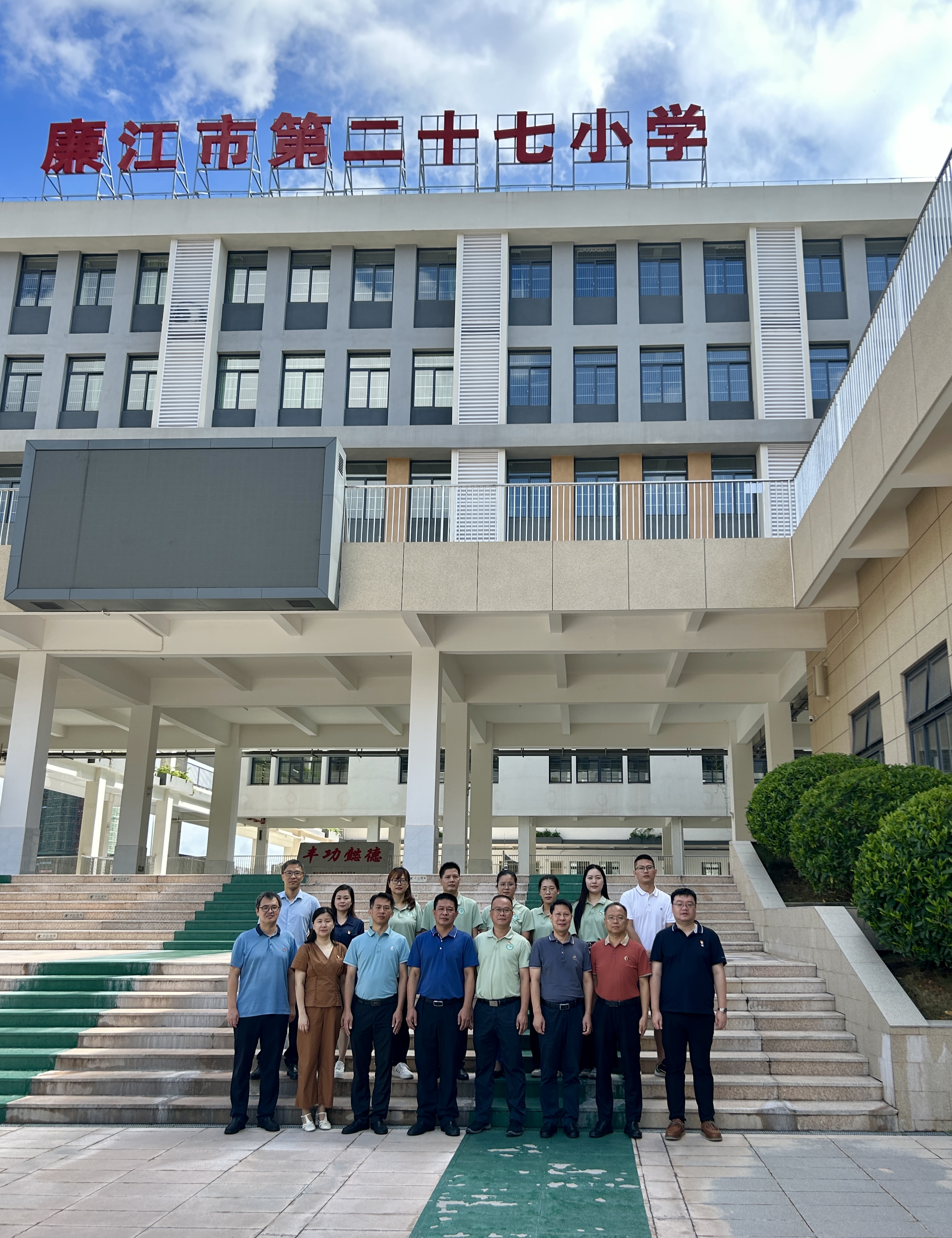 自我省启动百校联百县助力“百县千镇万村高质量发展工程”以来,学校积极廉江市开展结对共建工作。2024年7月8-9日,williamhill威廉希尔官网党委委员、副校长唐毓秋率队前往廉江市第二十七小学深入开展广东省百校联百县助力“百县千镇万村高质量发展工程”行动结对共建工作。期间,出席了与廉江第二十七小学共同举办的williamhill威廉希尔官网青年大学生“百千万工程”突击队行动暨大学生实习实践基地揭牌及图书捐赠仪式,并走访慰问了暑期“百千万工程”突击队、观摩指导测绘学院科普讲座、基层党支部共建等。