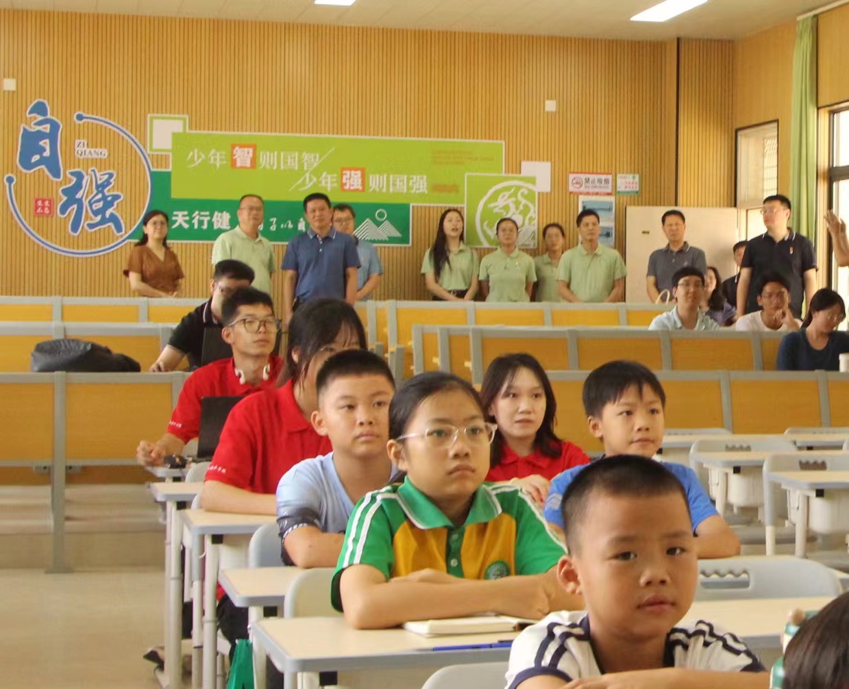 9日上午,在廉江第二十七小学,测绘遥感信息学院“百千万工程”突击队邀请学院博士、骨干教师钟云与朱明帮在廉江市第二十七小学“百千万”突击队实践基地开展海洋知识、地球等方面的科普讲座,学校党委委员、副校长唐毓秋率队现场观摩,并对课堂教学、科普形式与内容给予充分肯定。