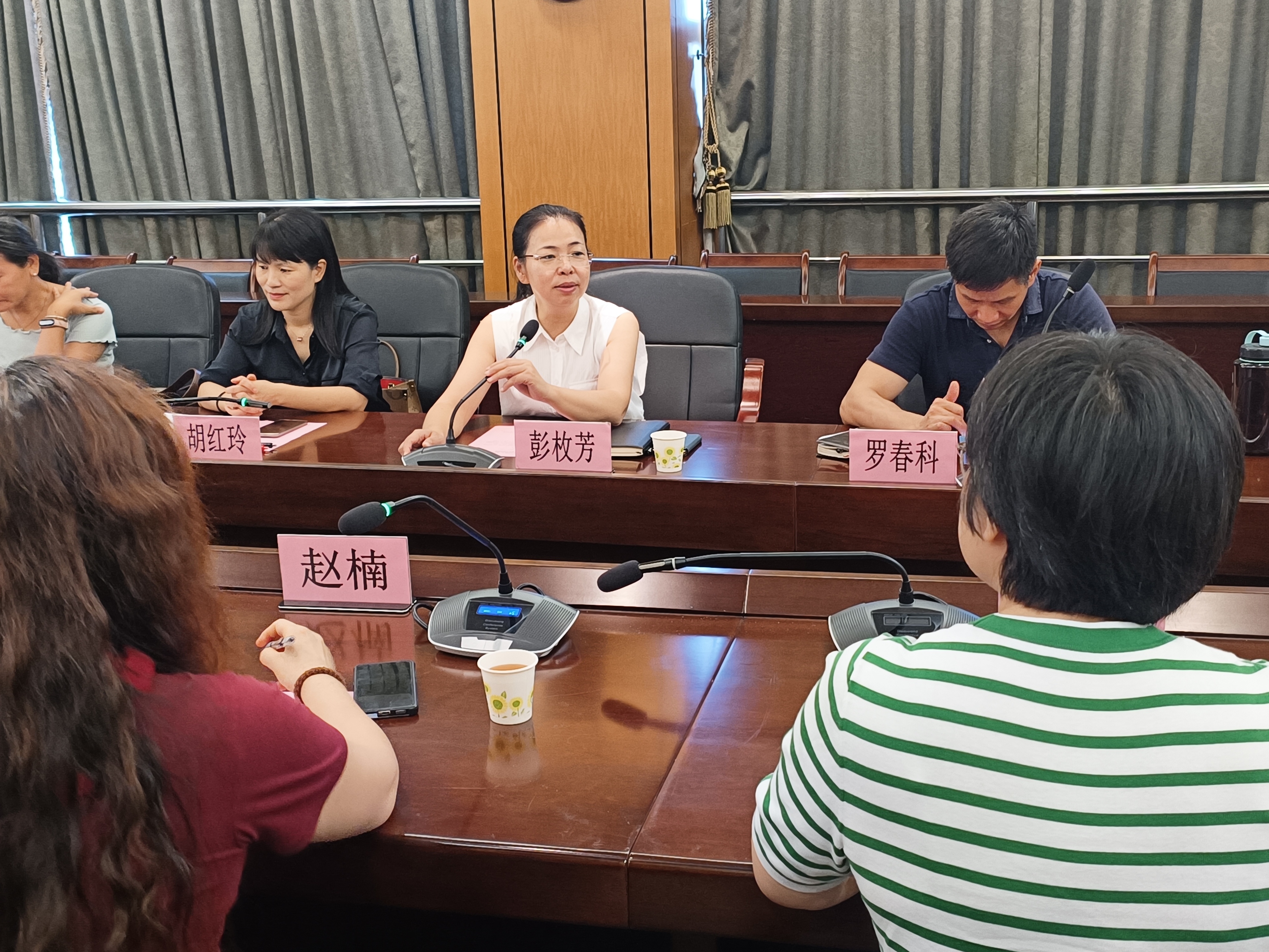 为更好开展2025年中高职贯通培养三二分段试点项目,7月8日,广东省财经职业技术学校商贸管理系主任赵楠等一行6位老师前来应用外语学院考察交流,应用外语学院院长彭枚芳、党总支临时负责人罗春科、副院长胡红玲、英语系主任陈锦英、办公室主任王燕玲出席本次会议,会议由彭枚芳主持。
