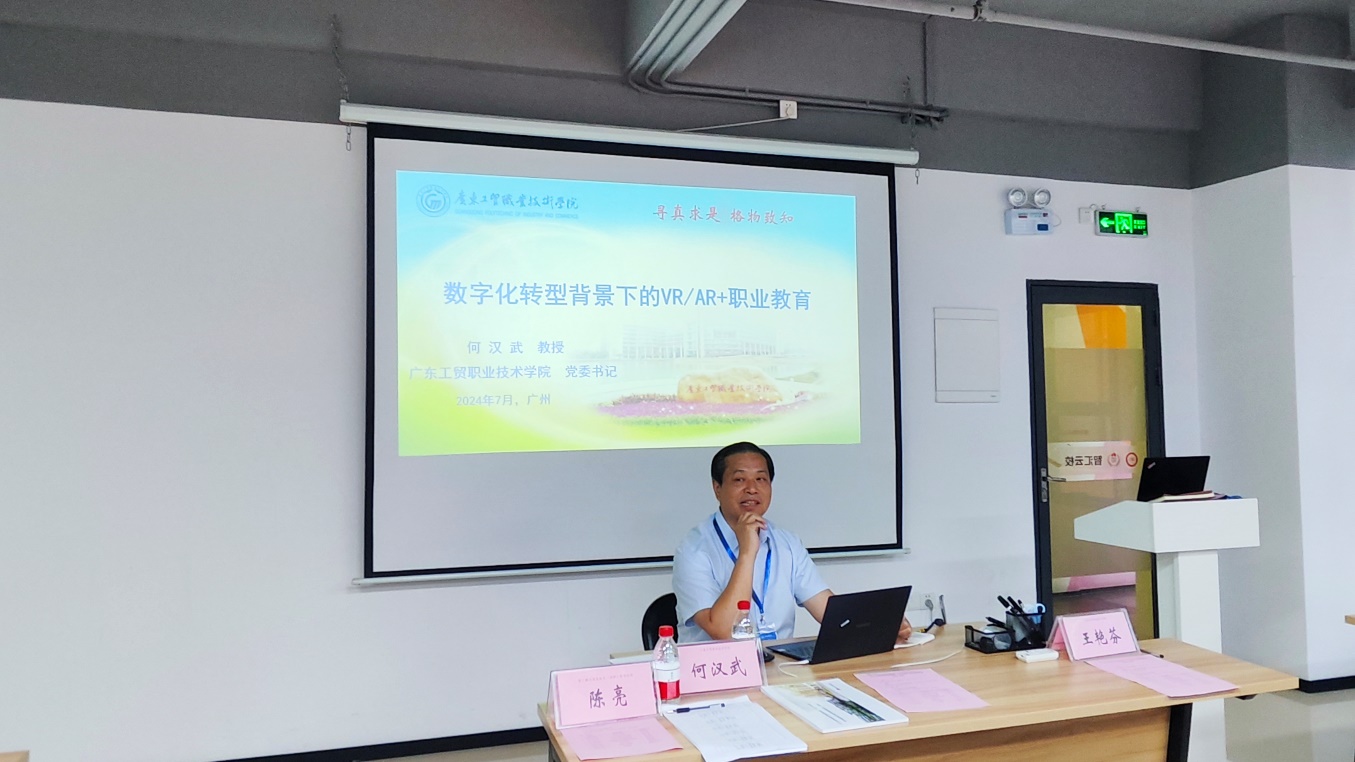 开班仪式结束后,williamhill威廉希尔官网党委书记何汉武教授就“数字化转型背景下的AR/VR+职业教育”专业和前沿技术进行授课,告诫老师们要与时俱进、根据新时代发展背景和新技术发展趋势及时调整自己的知识架构体系和深广度。