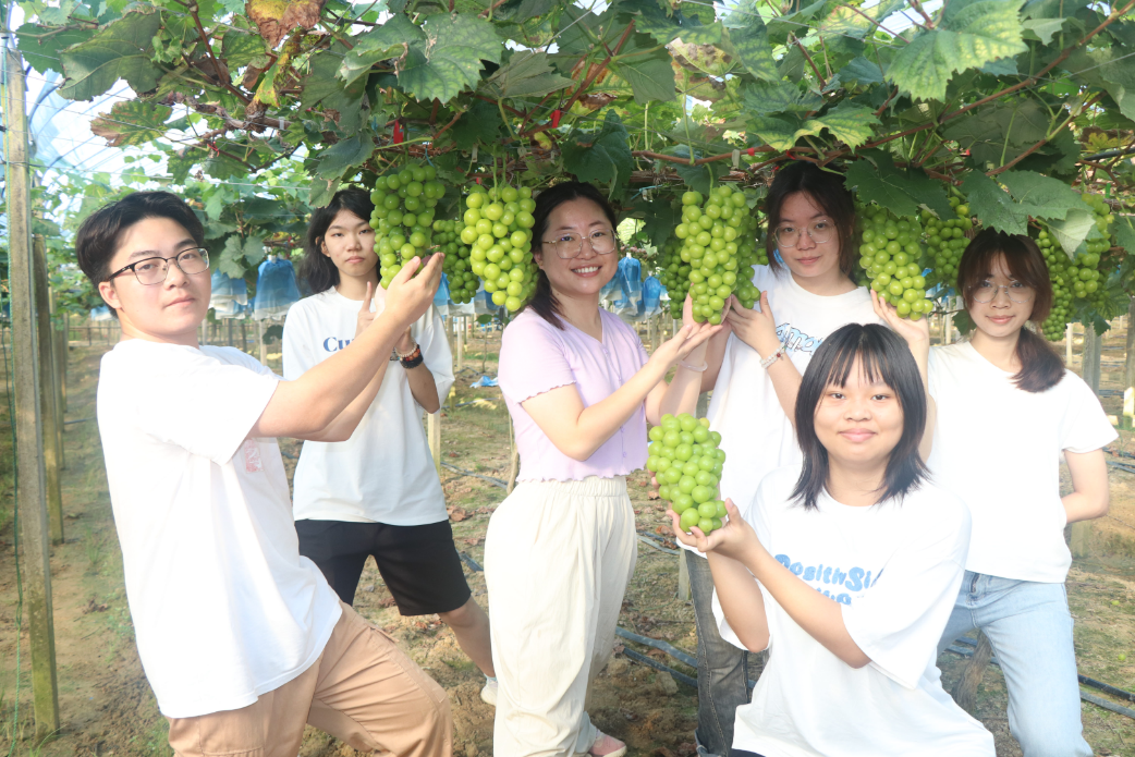 忙碌过后,园主许姐邀请在场的每一位实践队队员一起品尝这份来自田野的甜蜜果实,共同感受丰收的喜悦。实践队队员们纷纷表示,这次亲身体验不仅让他们品尝到了美味的葡萄,更让他们深刻感受到了村民们那份质朴、勤劳与乐观向上的精神风貌。
