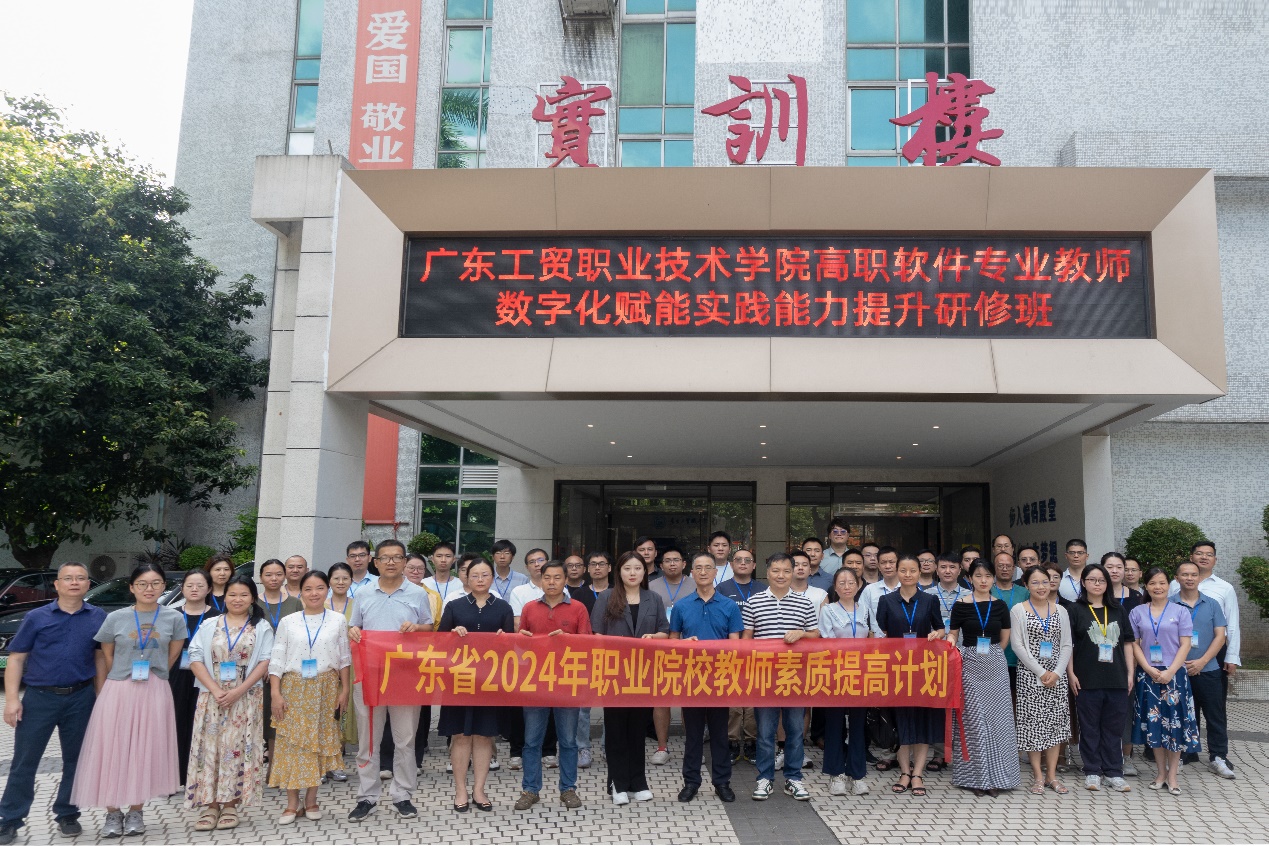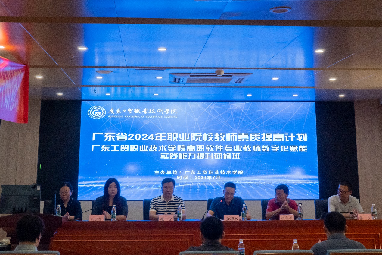 7月15日上午,广东省2024年职业院校教师素质提高计划国家级示范性(第一批)培训项目——高职软件专业教师数字化赋能实践能力提升研修班(国培)开班仪式在威廉希尔官网天河校区举行,参加开班仪式的有计算机与信息工程学院党总支书记张宁、院长余棉水,党总支副书记张艳、副院长单家凌、鲁庆以及东软教育集团有限公司广东省区域经理张诗葭,同时参加开班仪式的还有来自全省22所高职院校的40位学员。
