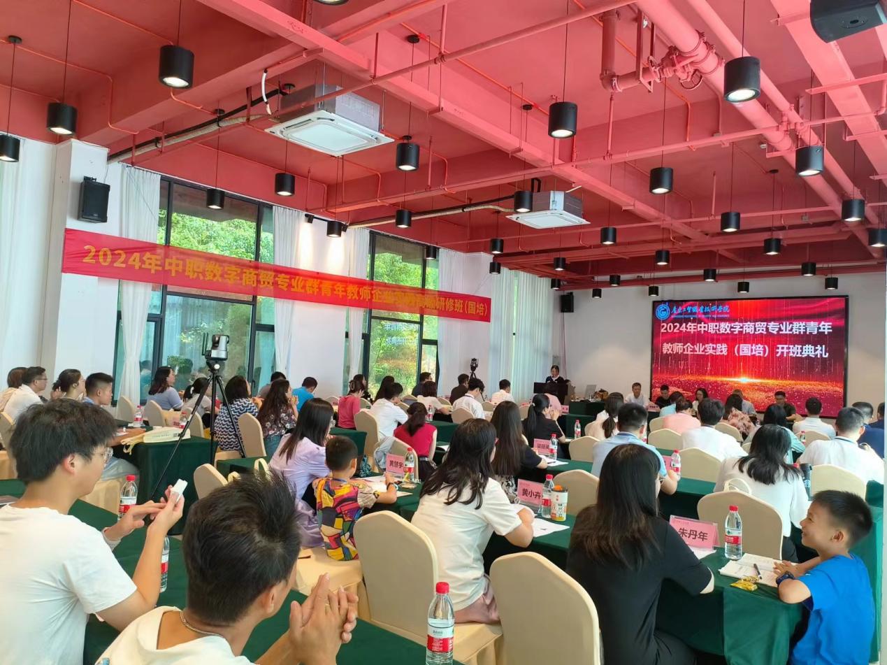 2024年7月15日下午,威廉希尔官网在广州市从化区百匠园会议厅隆重举办了“2024年中职数字商贸专业群青年教师企业实践高级研修班(国培)”的开班典礼。出席典礼的校内领导包括学校副校长赵红、继续教育与培训学院院长朱永平、教务处处长赵文龙、对外交流合作处副处长陈丽、经济贸易学院党总支书记李繁及副院长蒋晶。此外,从化区江埔街经济办主任罗惠津、广东省电子商务职教研究中心副秘书长周黄宁、国培项目的支持合作企业深圳华商联投资有限公司、广东恒富四海控股集团、广州一臣电子商务科技有限公司等企业代表等亦莅临现场,共有来自省内各中职院校的30名学员以及国培项目工作组全体成员参加了开班仪式。此次开班典礼组织严谨,汇聚了校政行企的领导和嘉宾。会议由经济贸易学院刘佳珺老师主持。