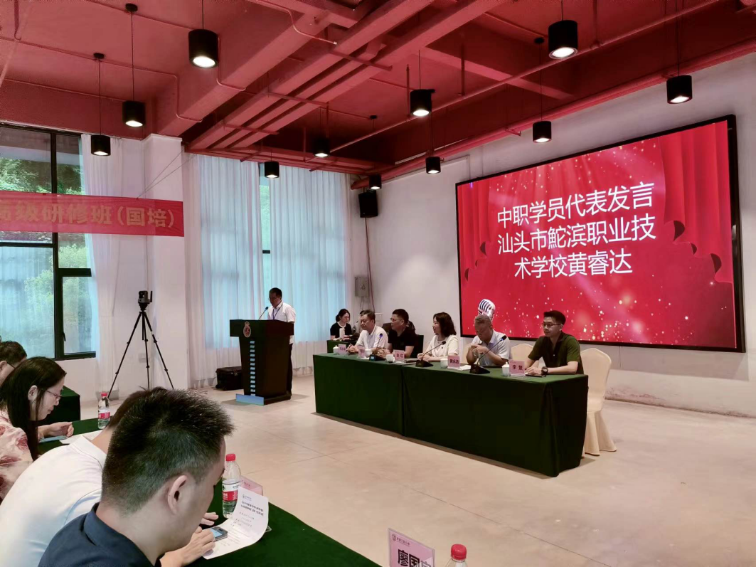 广州市财经商贸职业学校陈悦鑫老师与汕头市鮀滨职业技术学校黄睿达老师作为学员代表发言,他们表达了对本次研修班的期待与感激,承诺将珍惜学习机会,努力提升自我,为推动我国职业教育事业的发展贡献力量。
