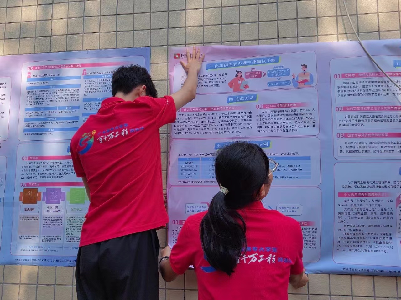 当日下午,“梦想起航”社会实践服务队将国家资助政策的宣传海报粘贴在村子和校园里,同时为村民们详细讲解此项政策申请所需的条件与要求,旨在让资助政策惠及真正需要的家庭,助力梦想启航。