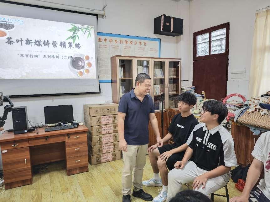 首先,讲师团在茶厂与公司刘仕珍总经理和冯劲松经理进行了茶产业的发展现状、茶产业的发展未来等方面进行研讨。然后,讲师团赴地派中学对员工开展茶产业销售策略培训。李政敏副教授从产茶叶品牌角度开展讲述,黄华乾博士分享了产品销售团队建设的心得,谷少永老师和企业员工探讨了新媒体营销策略选择。