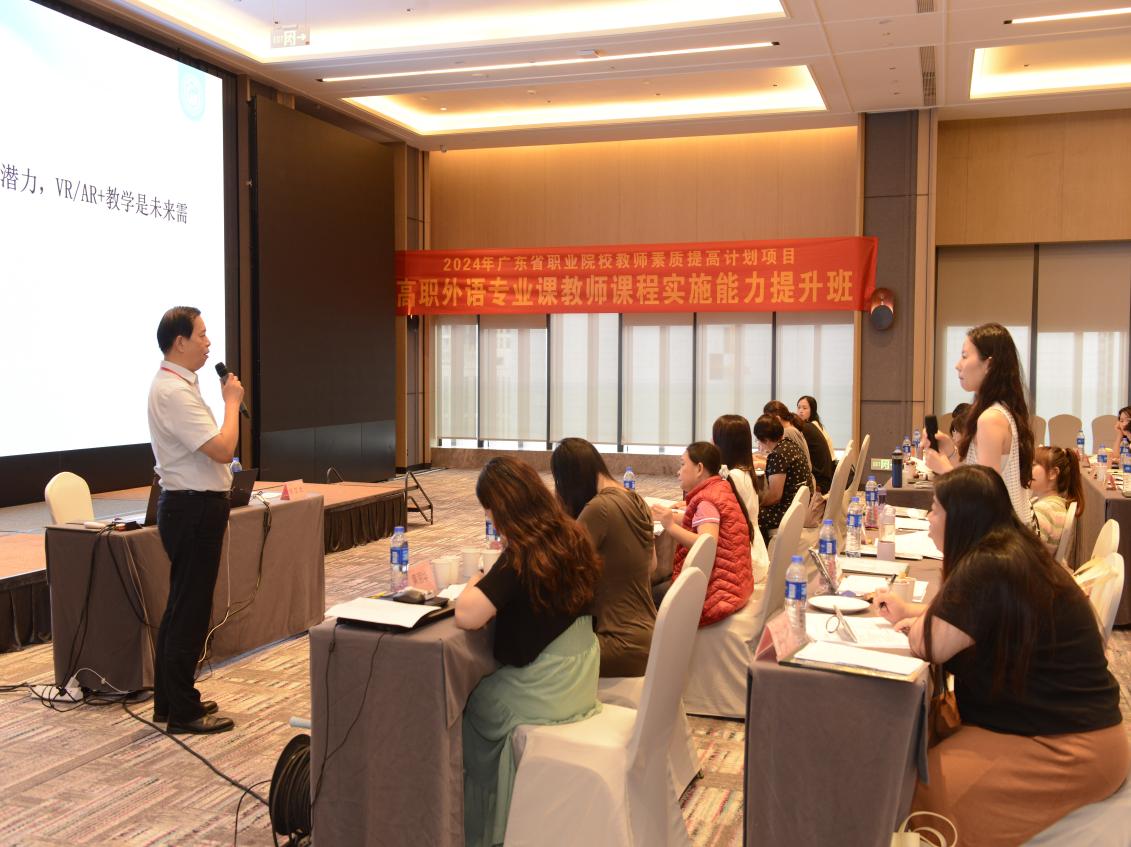 7月27日,williamhill威廉希尔官网党委书记何汉武教授应邀为高职外语专业课教师课程实施能力提升班(国培)作专题讲座。讲座题为"教育数字化:AI和VR/AR——职业教育数字化转型的推动力",全面阐述了教育数字化的背景、技术前沿、应用实践及未来趋势。