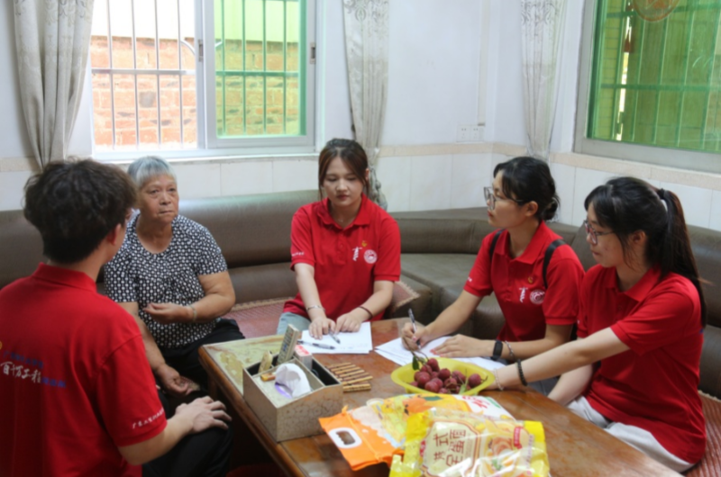 活动首站,“梦想起航”社会实践服务队拜访了广州市白云区钟落潭镇湴湖村的老党员高丽梅同志和退伍老兵朱灼新同志。高丽梅同志以平和而坚定的语调,回忆自己的入党经历和革命岁月,她的忠诚与奉献深深打动了在场的青年学生。朱灼新老兵则讲述自己为国奉献的青春故事,那份质朴的爱国情怀和无私奉献的精神,让青年学生们更加坚定了报效祖国的决心。