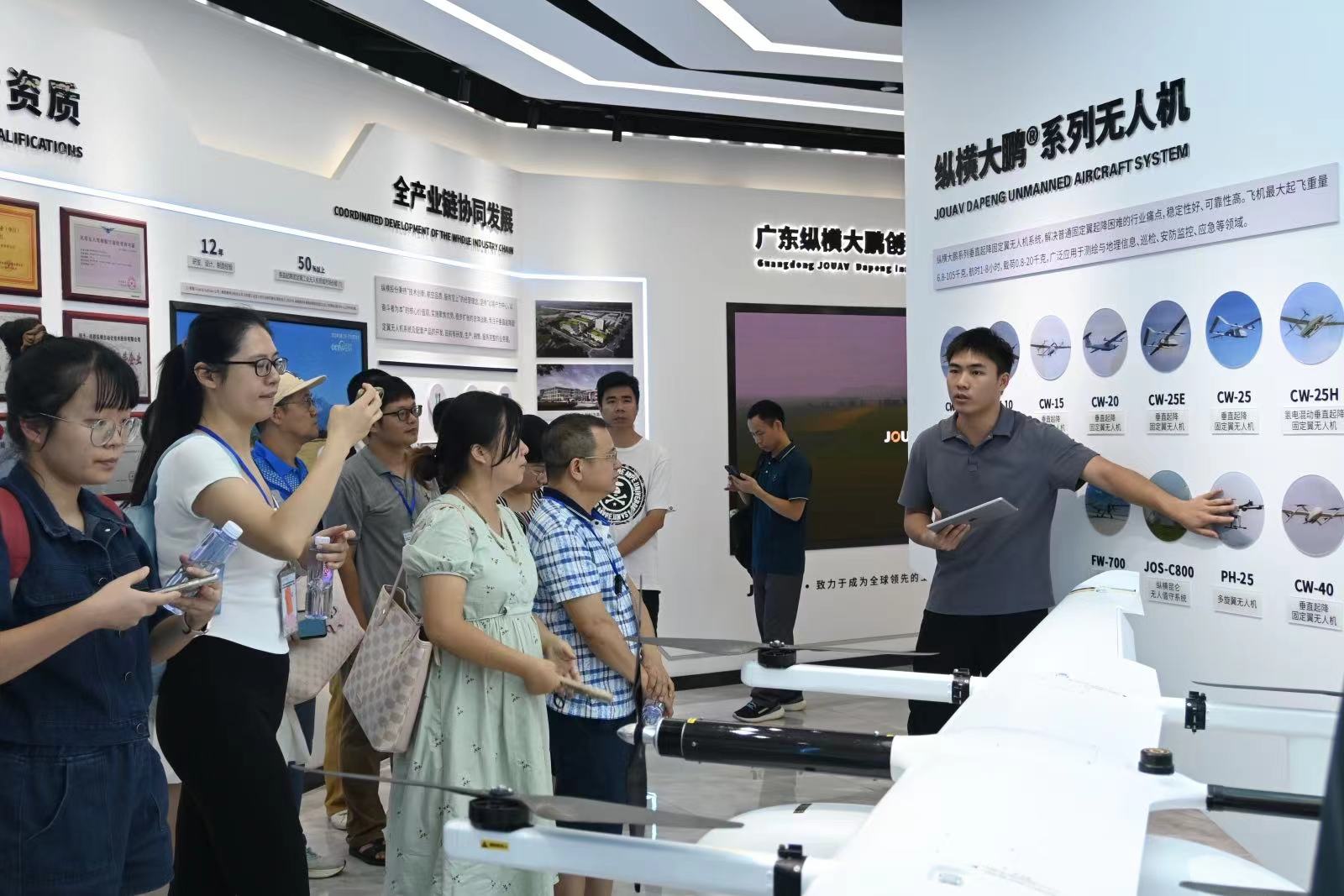 然后,学员们从学校东区出发,前往位于白云区沙太南路的广东纵横大鹏创新科技有限公司,进行企业调研与参观。在这里,大家不仅聆听了来自行业前沿的企业专家的精彩讲解,还亲身体验了无人机与AI技术的实际应用。通过与企业专家的深入交流,学员们对无人机与AI技术的市场
