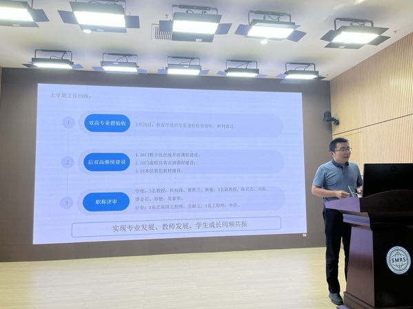 测绘学院副院长高照忠对上学期工作以及暑期工作作了总结回顾,并对本学期重点工作作了安排,提出要实现专业发展、教师发展、学生成长同频共振。