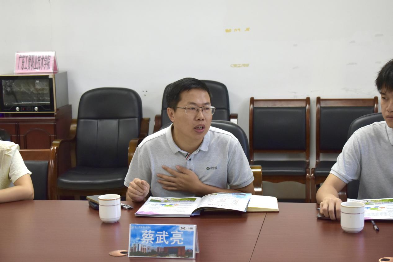 接着,小鹏汽车校企合作负责人蔡武亮对小鹏汽车目前的发展情况和招聘需求进行详细介绍,他表示,小鹏汽车虽然成立时间较短,但是成长非常迅速,希望能够在整车制造、售后技术服务、营销服务、数据标注、软件测试等业务板块与学院进行深入合作。并就下半年汽车制造产能提升所面临的人才需求向学院提出两点需求:一是能否让学生压缩学业,提前入职实习;二是否有机会以订单班的形式开展合作,让企业所需技能和企业文化融入人才培养,推动校企合作和产学融合。