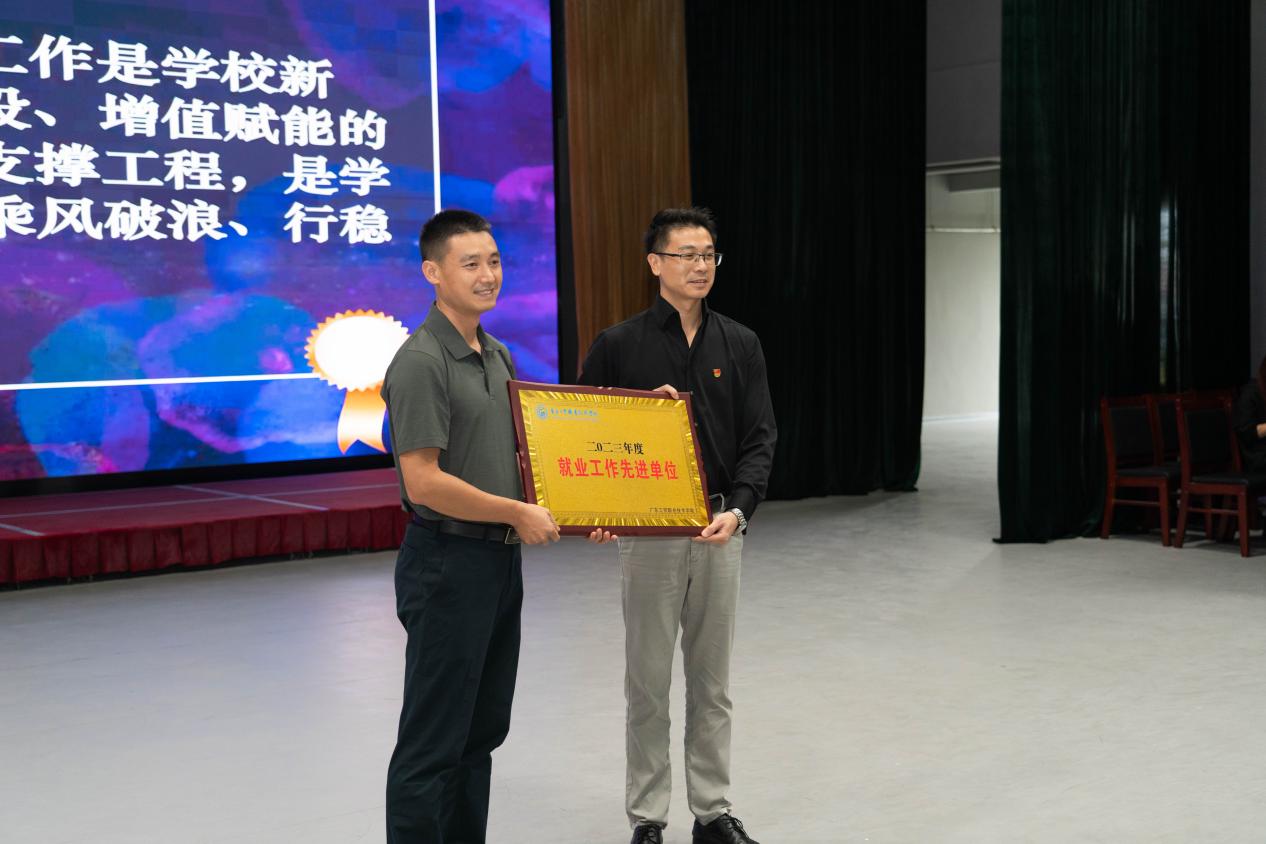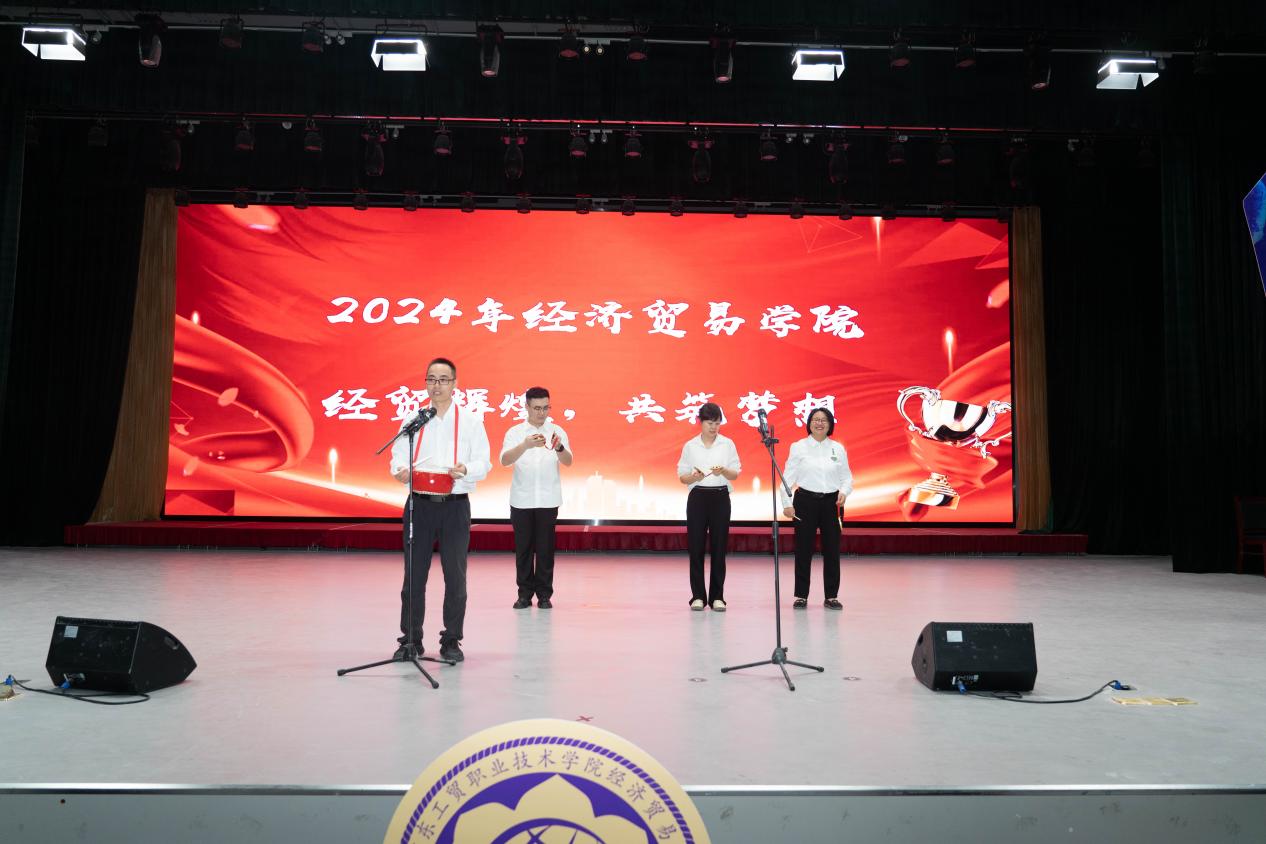 在过去的一年里,经贸学院上下锐意进取,秉持着“大力弘扬教育家精神,加快建设教育强国”的理想与抱负,为培养更多高素质技能人才而不断努力。2023-2024学年,经贸学院这个集体收获了许多荣誉。典礼先后颁发了“学校先进集体”“招生、就业工作先进集体”“先进基层党组织”等集体奖项,以表彰在学校各项工作中表现突出的团队;接着是个人奖项,对在管理、教学、科研、竞赛等方面取得显著成绩的教师进行了表彰。获奖教师们纷纷上台领奖,他们的脸上洋溢着自豪和喜悦,台下掌声雷动,气氛达到了高潮。这些奖项不仅是对教师们辛勤付出的肯定,更是对他们在教育事业中作出的杰出贡献的认可。
