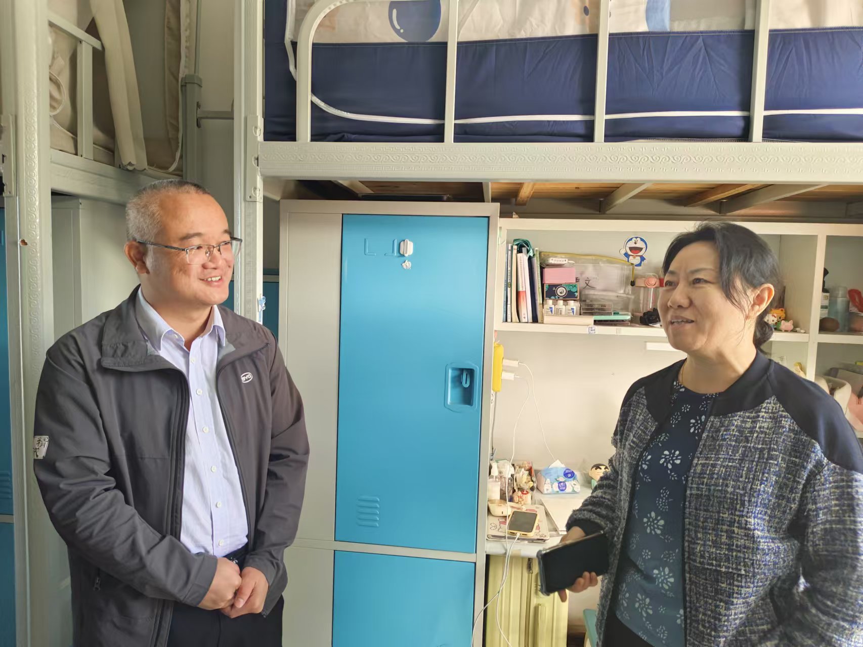 在宿舍走访过程中,赵红从宿舍卫生、学生周末生活情况、课后学习状况等方面与同学们进行了亲切交谈,耐心倾听同学们的心声。她勉励同学们要珍惜校园时光努力学习,养成良好的生活、卫生等习惯,积极参加体育煅练。同时她对文明宿舍的良好内务情况进行表扬,并提醒学生一定要注意宿舍卫生,预防流行性感冒。面对学生提出的在学习生活中遇到的问题,她都一一给予解答,为他们提供了切实可行的建议和指导。赵红强调,同学们应该在周末多出去走走,丰富课余生活,培养自己的兴趣爱好,接触社会锻炼自己,尽快明确职业目标,做好职业生涯规划。同时也要注意课前课后预习复习,不断通过学习实践提升自己的专业能力和技术水平,朝着职业目标前进。
