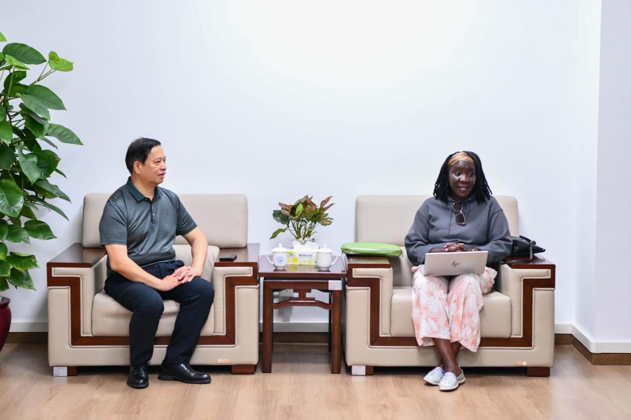 学校党委书记何汉武与赞比亚科技部技能司司长伊苏洛·普瑞舍斯·穆什巴座谈现场