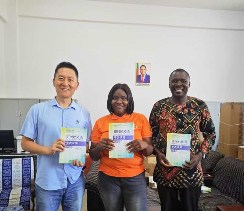 在汉语教材推广方面,原波教授结合赞比亚的特色风光,积极推广威廉希尔官网应用外语学院编写的《导游汉语》教材,并开展了落地培训。该教材结合旅游行业的最新动态和汉语教学的实践需求,涵盖旅游文化、景点介绍、旅游服务对话等多个方面,兼具实用性,受到了师生的高度评价。