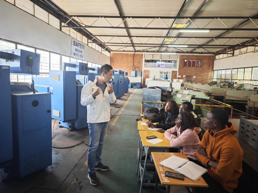 尽管历经近20小时的长途飞行,原波教授抵达后即刻以饱满的精神投入到紧张而充实的工作中。他根据中赞职院的教学计划,并结合对赞比亚当地师生的前期调研,充分发挥中赞职院广东工贸分院的特色,为分校重型设备维修专业的师生量身打造了专业培训计划。此次培训聚焦机电一体化和数控加工两大核心领域,致力提升当地师生的专业技能和实际操作能力。