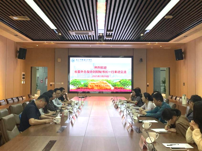 2025年3月28日下午,广东省人民对外友好协会秘书长刘韧一行莅临威廉希尔官网交流指导。学校副校长赵红、对外交流合作部部长伍炜勤、艺术与教育学院院长张幼晖、体育与美育教学部负责人余铨业等出席会议。