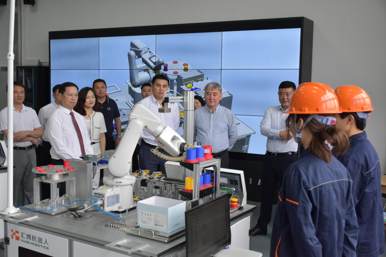 来宾首先参观了致知楼,详细了解了机电工程学院在工业机器人技术、智能制造等领域的实训设施与教学成果。重点考察了智能制造生产单元、工业机器人应用编程实训室、数控加工区、产教融合实训区、技能大师工作室等。来访嘉宾对机电工程学院的“校企协同、产教共生”的办学特色、“教学工厂”模式、学生作品等表达了高度的认可。